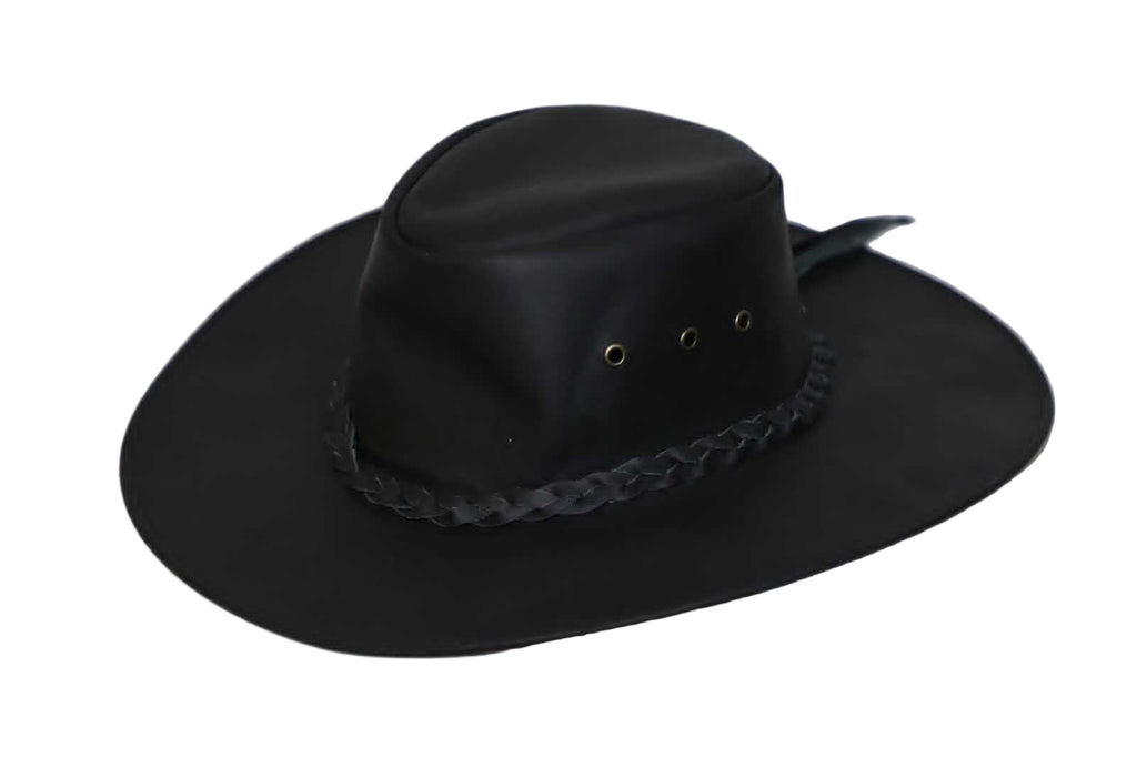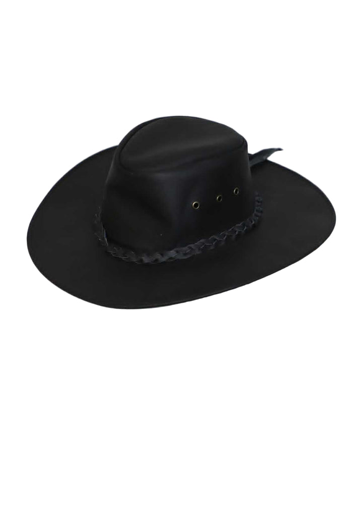 This 100% black leather western style hat was handmade by indigenous artisans in Mexico. It is water resistant and will perfectly complement your outfit. Also, has a spandex sweatband to ensure the perfect fit. Size Large. This is a fair trade item.