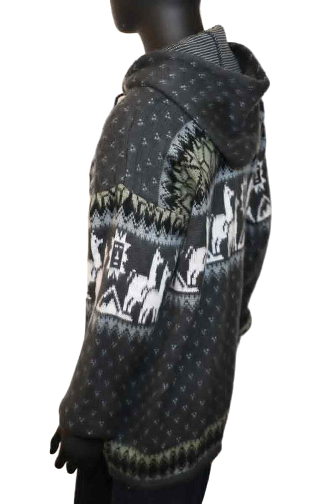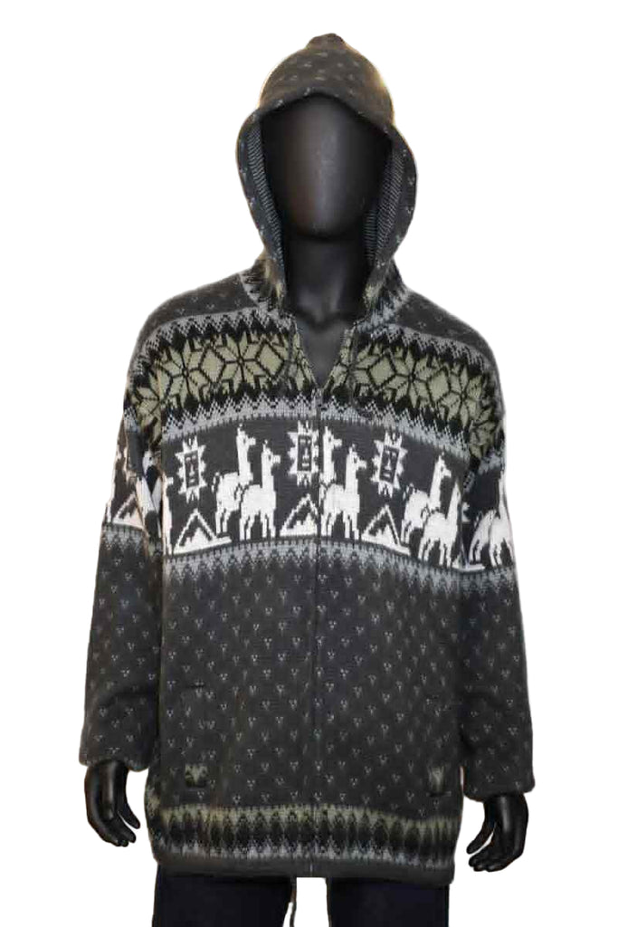 This XLarge unisex combed alpaca wool blend hoodie zips up and has spacious pockets on the front. It is 50/50 alpaca and acrylic. This is a fair trade item from Peru.