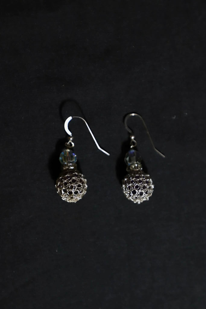 These are beautifully hand crocheted Sterling Silver with black onyx and Swarovski crystal earrings that were hand-crafted by Jannett Spearman in Lynchburg, Virginia using Peruvian crochet techniques. They measure approximately 1.5" long and .5" in diameter.