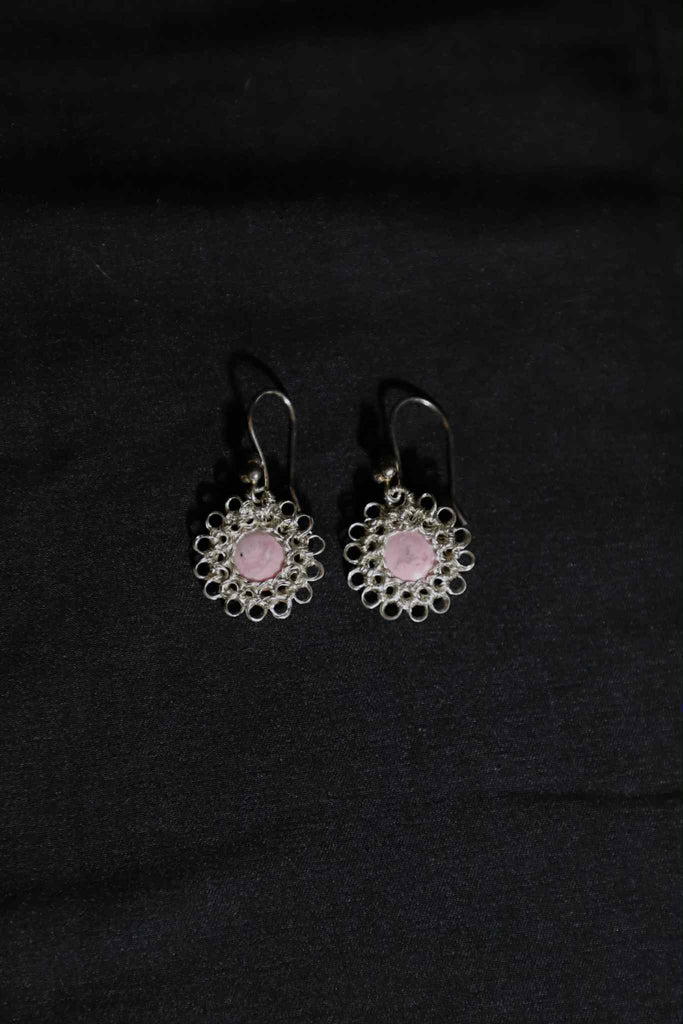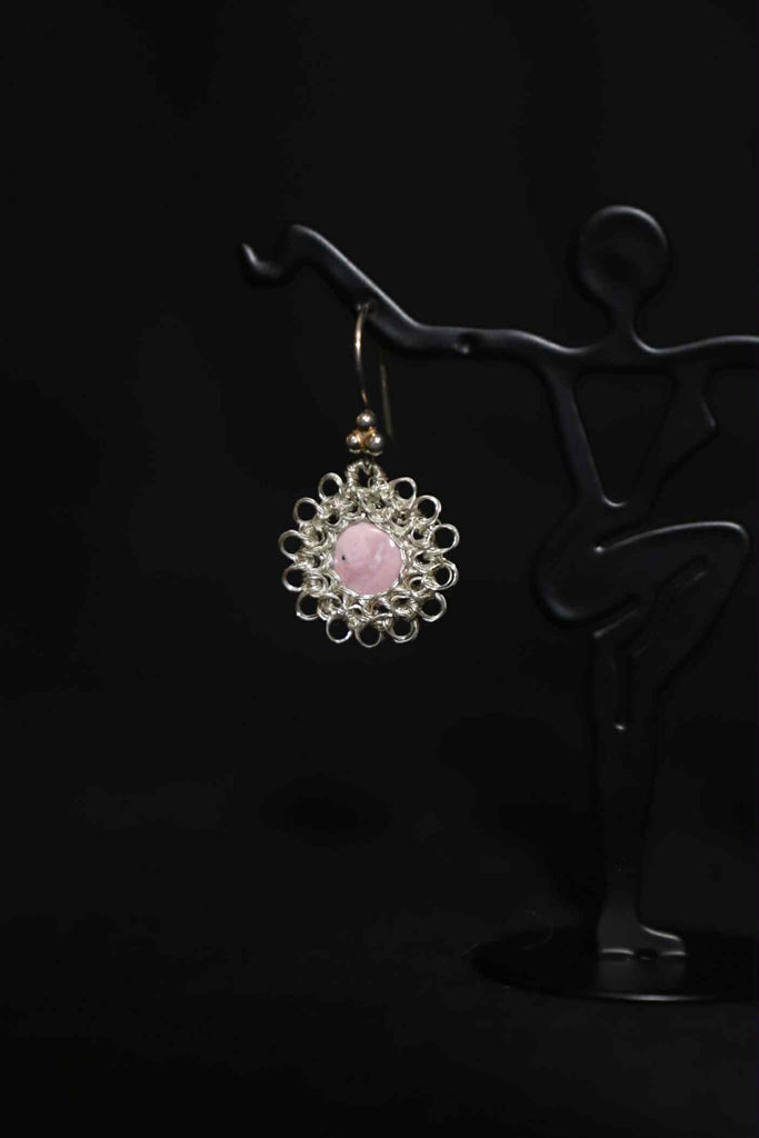 Wire Crochet Sterling Silver Pink Jasper Earrings