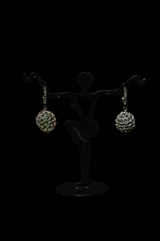 These are beautifully hand crocheted in fine Sterling Silver with 10mm Aventurine Quartz. The hooks are encrusted with Swarovski crystals. These were hand-crafted by Jannett Spearman in Lynchburg, Virginia, using Peruvian crochet techniques. They measure 1 3/8" long.