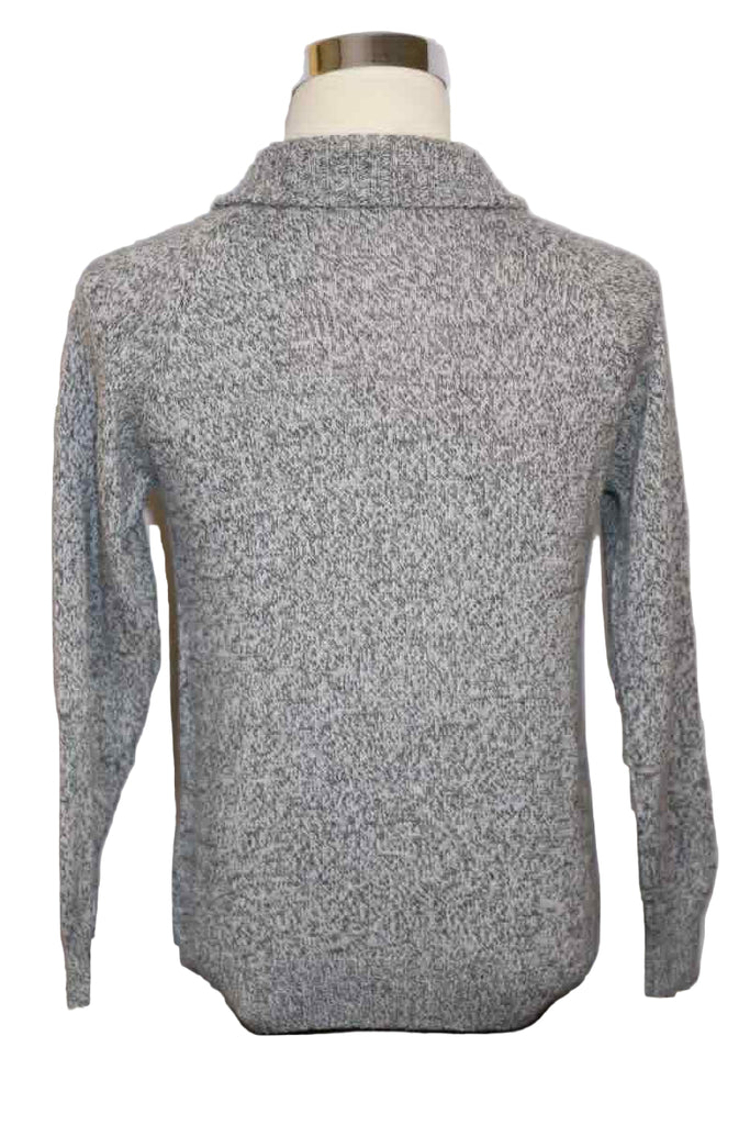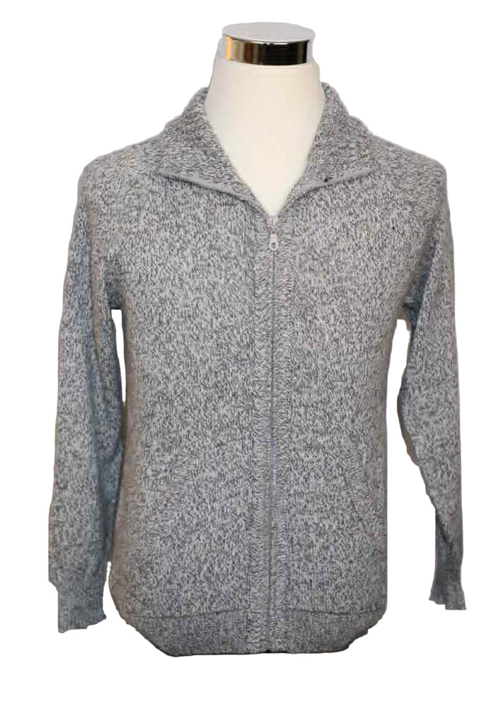 This is a beautiful Marbled White/Gray men's full zip cardigan. It is extremely soft to the touch, hypoallergenic, and warm. It is a blend with 50% alpaca, 5% wool, and 45% acrylic.