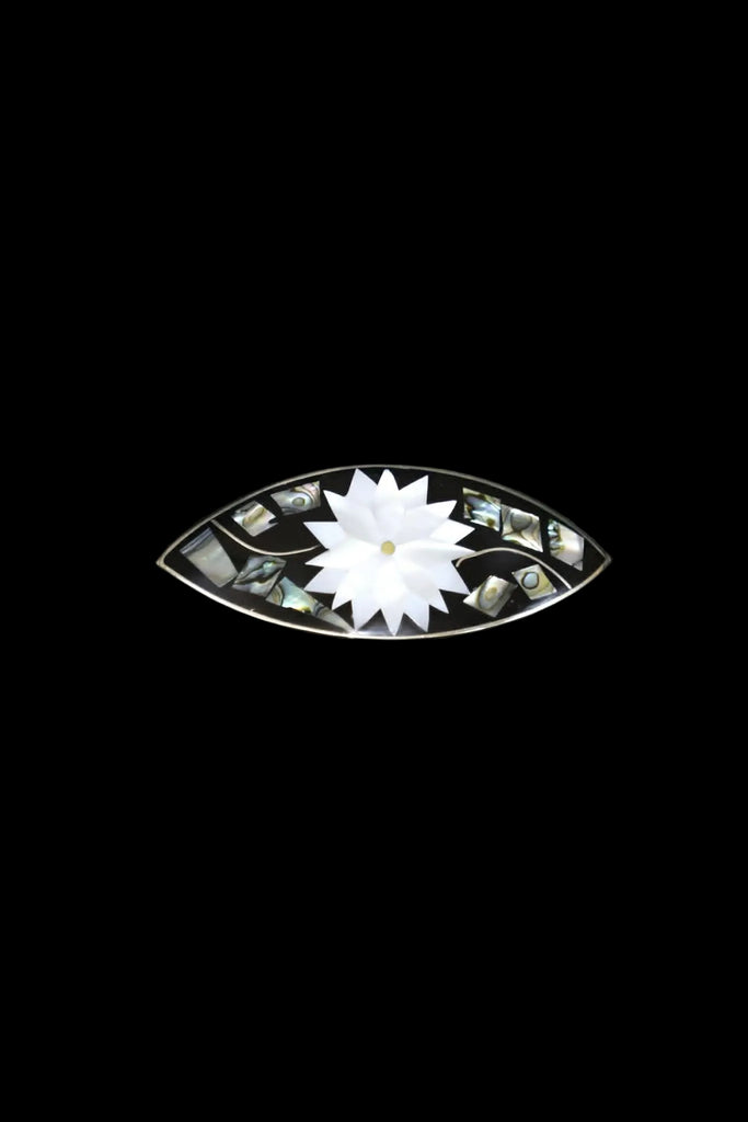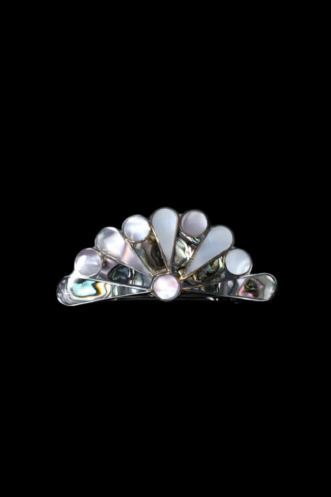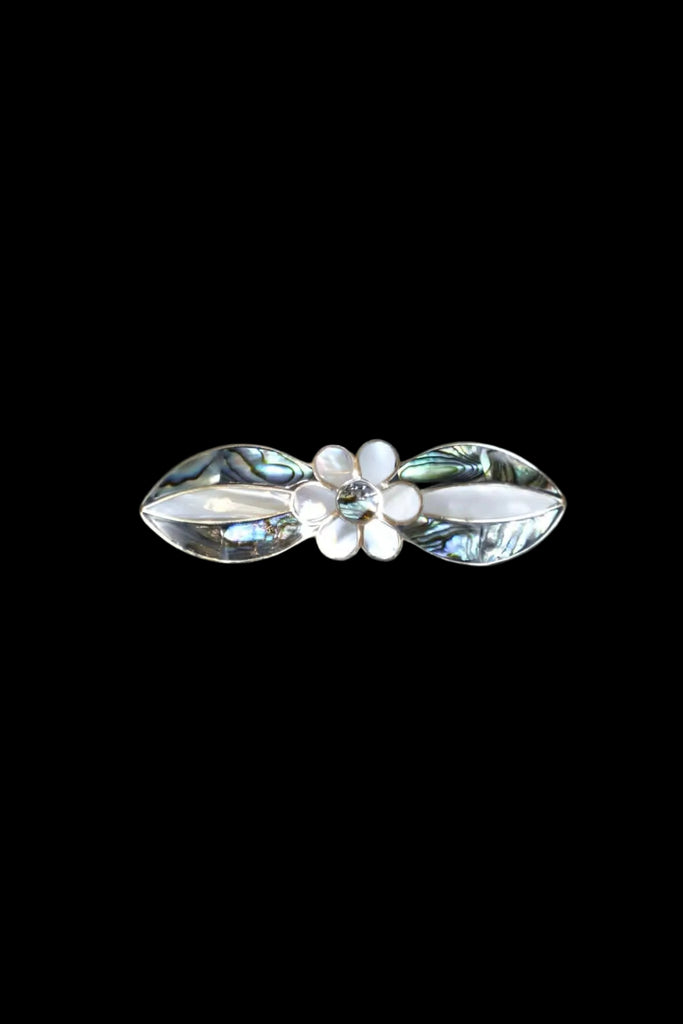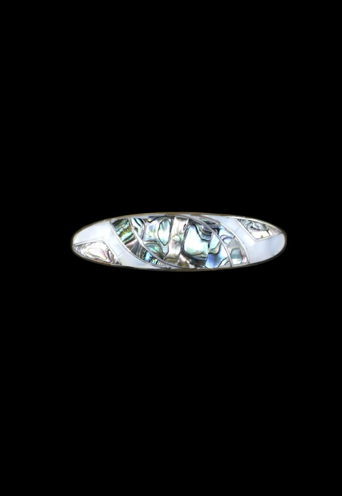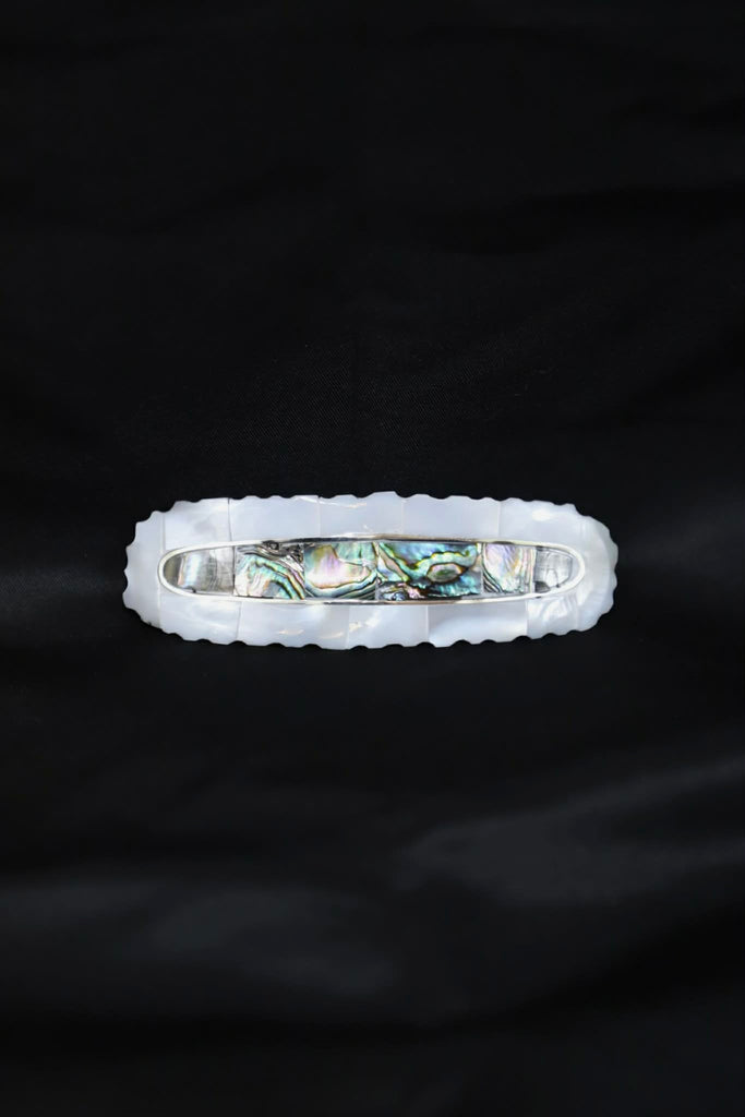 These are beautiful Abalone Shell, enamel, and mother of pearl barrettes. They are each one of a kind and were made in Taxco, Mexico. They each vary in size but are all between 3.5" to 4" long and 1" to 1.5" wide which is reflected in the price.