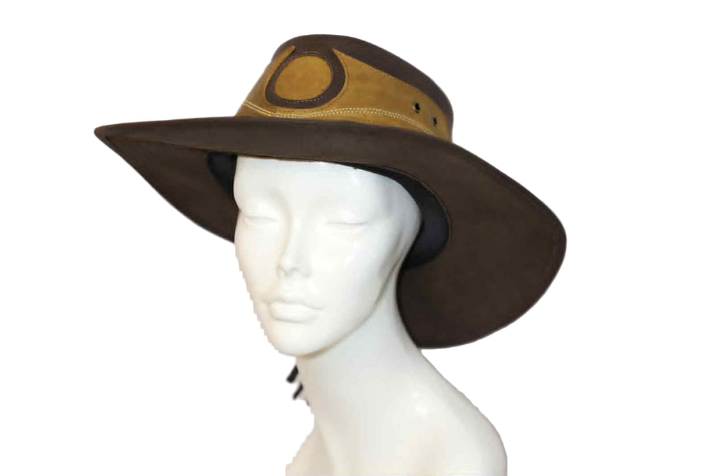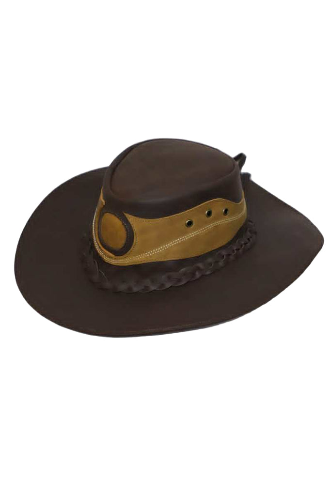 This 100% brown leather western style hat was handmade by indigenous artisans in Mexico. It is water resistant and will perfectly complement your outfit. Also, has a spandex sweatband to ensure the perfect fit. Size Large. This is a fair trade item.