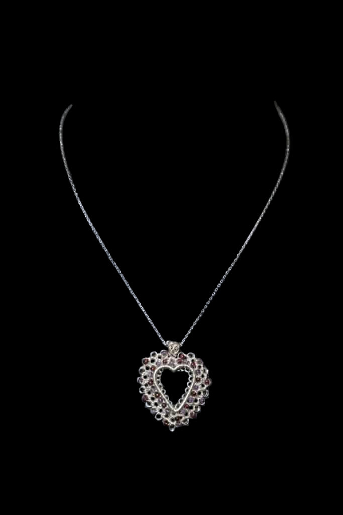 Garnet and Amethyst Heart Wire Crochet Necklace