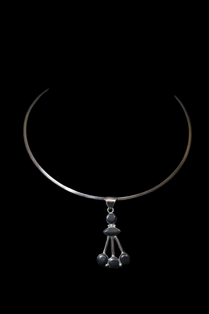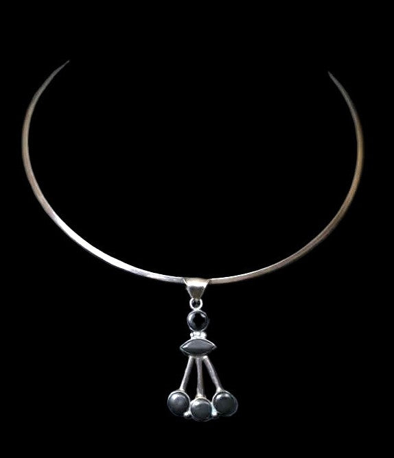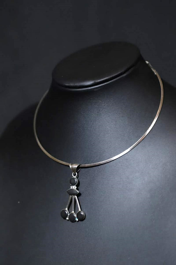 This is a handcrafted 950 sterling silver pendant with Black Onyx pendant and matching earrings. The pendant measures 2" x 1". It can come with a 16" or 18" silver chain upon request. The earrings measure 1.25" x .5". These are fair-trade items from Peru.