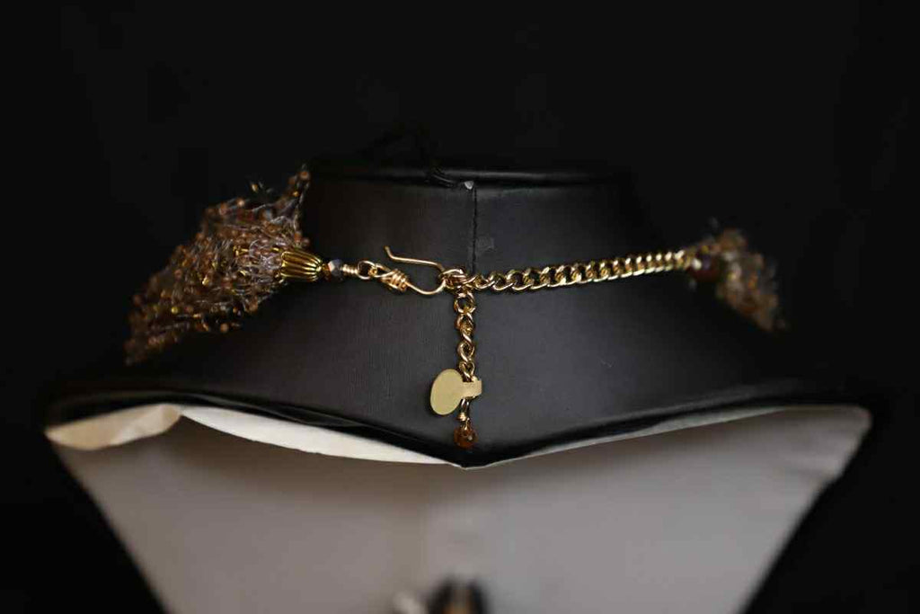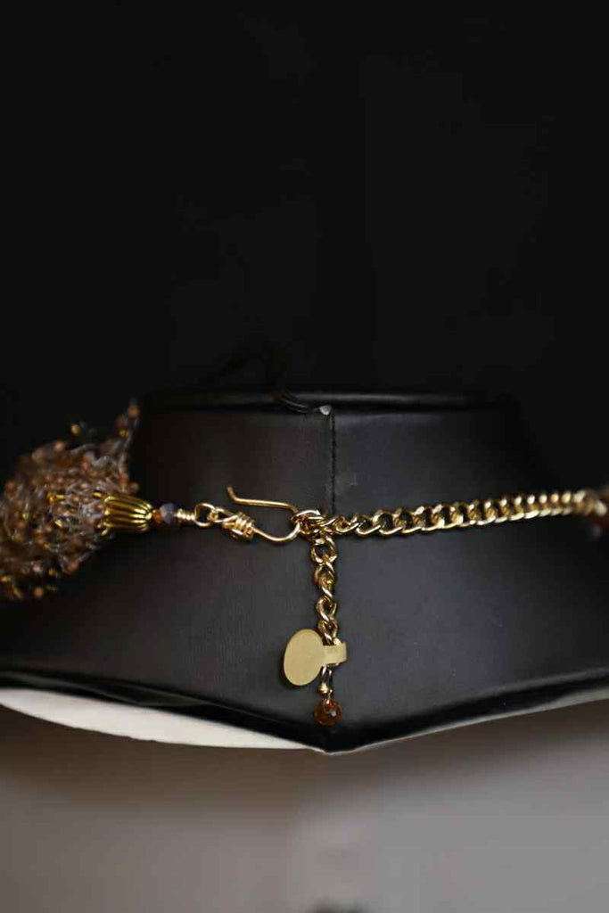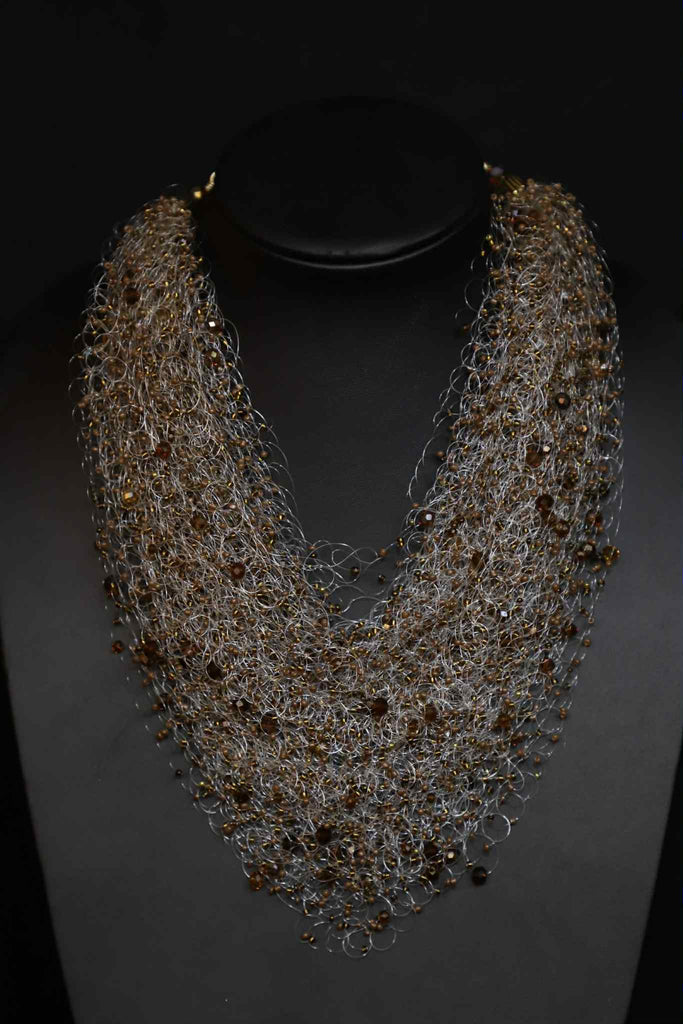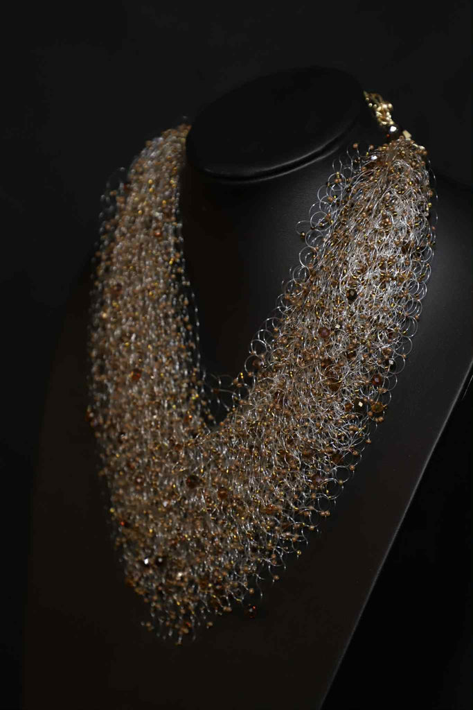 This necklace was created using monofilament and 6mm glass beads. It has an adjustable chain from 24" to 17".