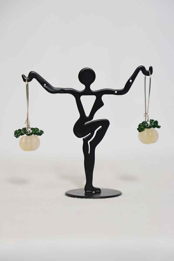 These earrings are popular every year! They are made with 9.25 sterling silver hooks, enameled copper and lamp work glass. The measure 1 1/4" long x 5/16 wide.