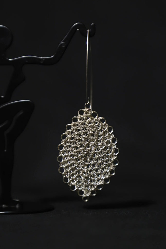Sterling Silver Crochet Leaf Earrings