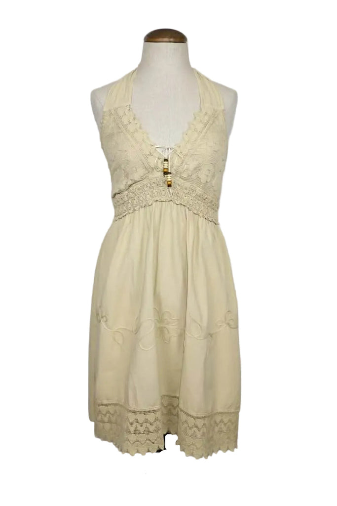 This beautiful Bohemian style, pre-washed halter top dress is made out of organic cotton. , This is a fair trade item from Peru.