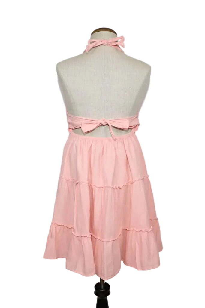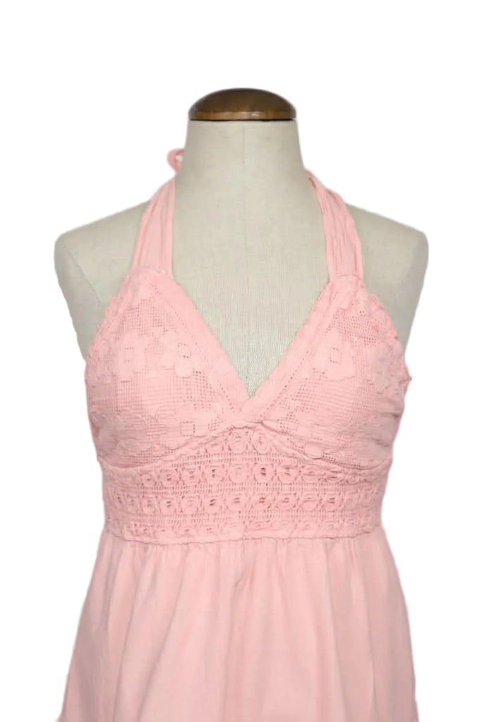 This beautiful Bohemian style, pre-washed halter top dress is made out of organic cotton. , This is a fair trade item from Peru.